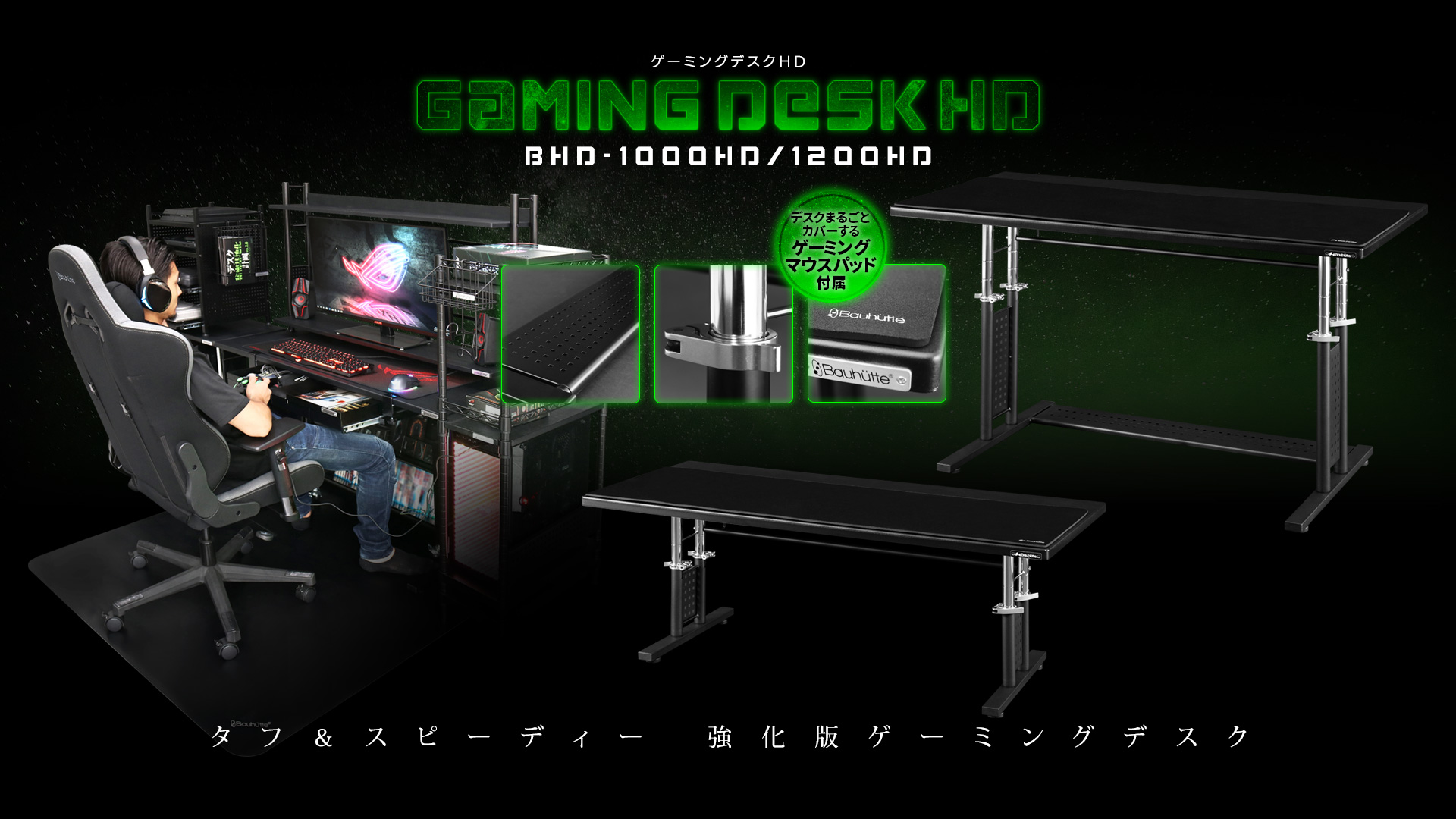 - Bauhutte ゲーミングデスクHD BHD-1200HDM-BK