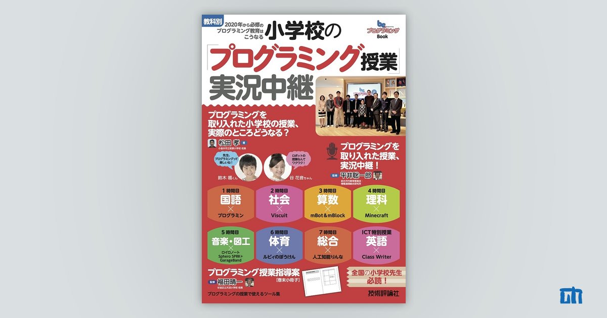 小学校プログラミング教育の基礎知識、授業実施例、取り組み紹介などを掲載した書籍です。
