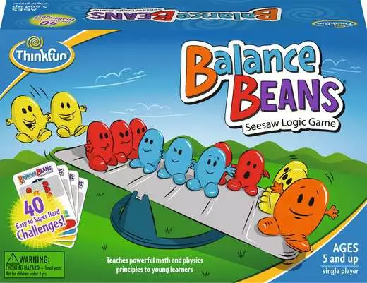 カードに書いてある課題に従い、色によって重さの違う「バランスビーンズ」をシーソーの上に載せ、バランスを取るゲームのようです。